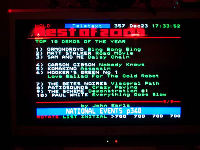 23rd December 2003: Sam and Me voted third best demo of the year on Teletext